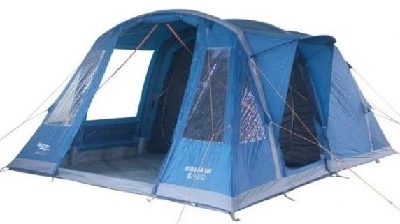 Vango Osiris 500 Air Tent Another feature is the covered entrance, preventing rain from entering the living area and the front door can be King-Poled open to allow for a sun-canopy to bring the outdoors in.